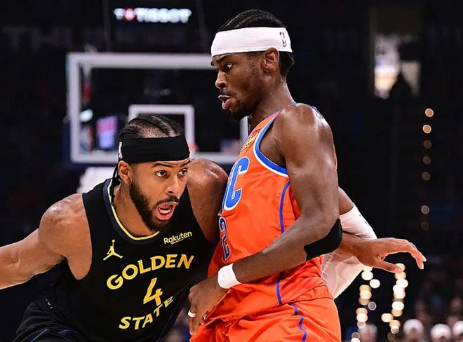 北京时间11月12日,NBA常规赛迎来一场焦点大战,雷霆主场对阵勇士。此前雷霆战绩10胜1负,排名西部第一,勇士战绩6胜5负,排名西部第七。首先,这支雷霆在二当家杰威长时间养伤,且多位重要角色球员因伤病进进出出的情况下,还能打出联盟第一的战绩,确实印证了他们可怕的阵容深度和强大的整体实力。列举几个数据,雷霆本赛季场均控制失分108.8分联盟第一,防守效率105.8联盟第一!净效率值+13.2联盟第一,和他们能在同一水平线的只有掘金,当然,掘金是进攻大队,雷霆这几个赛季,可都是防守最强的球队。